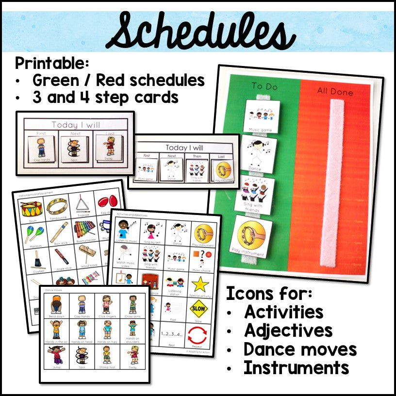 {"id":652126388287,"title":"Music Visual Supports and Schedules","handle":"music-visual-supports-and-schedules","description":"\u003cp\u003e\u003cspan\u003eThese visual supports will help your special education students succeed in music class! Add schedules, visuals, rules and communication supports to music activities with this resource.\u003c\/span\u003e\u003cbr\u003e\u003cbr\u003e\u003cspan\u003eMusic class and activities can be challenging for students with autism. The sensory experience can lead to anxiety and overwhelm. Setting expectations and providing communication supports can help you reduce some of these challenges.\u003c\/span\u003e\u003cbr\u003e\u003cbr\u003e\u003cspan\u003eMusic can be an opportunity for inclusion but we must take extra steps to make sure our special education students are successful. Simply putting them with their peers can be a recipe for disaster! \u003c\/span\u003e\u003cbr\u003e\u003cbr\u003e\u003cspan\u003eTwo of the easiest ways to increase the likelihood of success is to provide structure with schedules and offer choices using visuals. This resource can be used for basic music classes or for music activities within a special education classroom.\u003c\/span\u003e\u003c\/p\u003e\n\u003cp\u003e\u003cstrong\u003eSavings Alert!\u003c\/strong\u003e\u003c\/p\u003e\n\u003cp\u003e\u003ca href=\"https:\/\/autismworktasks.com\/collections\/money-saving-bundles\/products\/autism-visual-supports-bundle\"\u003eThis is part of a larger bundle.\u003cspan\u003e \u003c\/span\u003e\u003cstrong\u003eCheck it out here\u003c\/strong\u003e\u003cspan\u003e \u003c\/span\u003eand get all of my visual supports at a discount!\u003c\/a\u003e\u003c\/p\u003e\n\u003cp\u003e\u003cstrong\u003eContents\u003c\/strong\u003e\u003cbr\u003e\u003c\/p\u003e\n\u003cul\u003e\n\u003cli\u003e\u003cspan\u003e52 schedule and choice icons with activities, instruments and dance moves\u003c\/span\u003e\u003c\/li\u003e\n\u003cli\u003e\u003cspan\u003e“I want” communication strips\u003c\/span\u003e\u003c\/li\u003e\n\u003cli\u003e\u003cspan\u003eCommunication visual with requests\u003c\/span\u003e\u003c\/li\u003e\n\u003cli\u003e\u003cspan\u003eVoting cards (Thumbs up\/Thumbs down; I like it\/I don't like it)\u003c\/span\u003e\u003c\/li\u003e\n\u003cli\u003e\u003cspan\u003e\"Too loud\" social narrative\u003c\/span\u003e\u003c\/li\u003e\n\u003cli\u003e\u003cspan\u003eGreen\/Red schedule\u003c\/span\u003e\u003c\/li\u003e\n\u003cli\u003e\u003cspan\u003eFirst\/Next\/Last and First\/Next\/Then\/Last schedules\u003c\/span\u003e\u003c\/li\u003e\n\u003cli\u003e\u003cspan\u003eMini rules visuals\u003c\/span\u003e\u003c\/li\u003e\n\u003cli\u003e\u003cspan\u003eFull page rules visuals\u003c\/span\u003e\u003c\/li\u003e\n\u003c\/ul\u003e\n\u003cp\u003e\u003cspan\u003eIncludes instructions to set up and use each support.\u003c\/span\u003e\u003c\/p\u003e\n\u003cp\u003eThis download is a zip file for ease of organization.\u003c\/p\u003e\n\u003cp\u003e\u003cstrong\u003e\u003cem\u003ePlease note:\u003c\/em\u003e\u003c\/strong\u003e\u003cem\u003e This is a digital download. You will download, print, and prep as needed. No physical items will be sent to you.\u003c\/em\u003e\u003c\/p\u003e","published_at":"2018-04-28T15:22:24-05:00","created_at":"2018-04-28T15:23:04-05:00","vendor":"Adapting for Autism","type":"","tags":["music","specials","visual aids","visual supports","visuals"],"price":500,"price_min":500,"price_max":500,"available":true,"price_varies":false,"compare_at_price":null,"compare_at_price_min":0,"compare_at_price_max":0,"compare_at_price_varies":false,"variants":[{"id":7485696835647,"title":"Default Title","option1":"Default Title","option2":null,"option3":null,"sku":"","requires_shipping":false,"taxable":false,"featured_image":null,"available":true,"name":"Music Visual Supports and Schedules","public_title":null,"options":["Default Title"],"price":500,"weight":0,"compare_at_price":null,"inventory_management":null,"barcode":"","requires_selling_plan":false,"selling_plan_allocations":[]}],"images":["\/\/autismworktasks.com\/cdn\/shop\/files\/musicvisualsupportsschedulescommunicationrulesspecialeducation_1.jpg?v=1758554351","\/\/autismworktasks.com\/cdn\/shop\/files\/musicvisualsupportsschedulescommunicationrulesspecialeducation_2.jpg?v=1758554351","\/\/autismworktasks.com\/cdn\/shop\/files\/musicvisualsupportsschedulescommunicationrulesspecialeducation_3.jpg?v=1758554351","\/\/autismworktasks.com\/cdn\/shop\/files\/musicvisualsupportsschedulescommunicationrulesspecialeducation_4.jpg?v=1758554351"],"featured_image":"\/\/autismworktasks.com\/cdn\/shop\/files\/musicvisualsupportsschedulescommunicationrulesspecialeducation_1.jpg?v=1758554351","options":["Title"],"media":[{"alt":null,"id":26689319272511,"position":1,"preview_image":{"aspect_ratio":1.0,"height":816,"width":816,"src":"\/\/autismworktasks.com\/cdn\/shop\/files\/musicvisualsupportsschedulescommunicationrulesspecialeducation_1.jpg?v=1758554351"},"aspect_ratio":1.0,"height":816,"media_type":"image","src":"\/\/autismworktasks.com\/cdn\/shop\/files\/musicvisualsupportsschedulescommunicationrulesspecialeducation_1.jpg?v=1758554351","width":816},{"alt":null,"id":26689319305279,"position":2,"preview_image":{"aspect_ratio":1.0,"height":816,"width":816,"src":"\/\/autismworktasks.com\/cdn\/shop\/files\/musicvisualsupportsschedulescommunicationrulesspecialeducation_2.jpg?v=1758554351"},"aspect_ratio":1.0,"height":816,"media_type":"image","src":"\/\/autismworktasks.com\/cdn\/shop\/files\/musicvisualsupportsschedulescommunicationrulesspecialeducation_2.jpg?v=1758554351","width":816},{"alt":null,"id":26689319338047,"position":3,"preview_image":{"aspect_ratio":1.0,"height":816,"width":816,"src":"\/\/autismworktasks.com\/cdn\/shop\/files\/musicvisualsupportsschedulescommunicationrulesspecialeducation_3.jpg?v=1758554351"},"aspect_ratio":1.0,"height":816,"media_type":"image","src":"\/\/autismworktasks.com\/cdn\/shop\/files\/musicvisualsupportsschedulescommunicationr